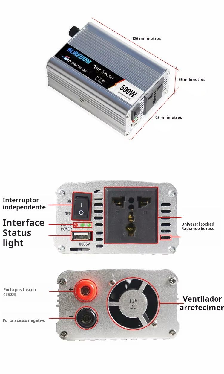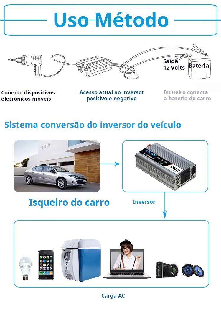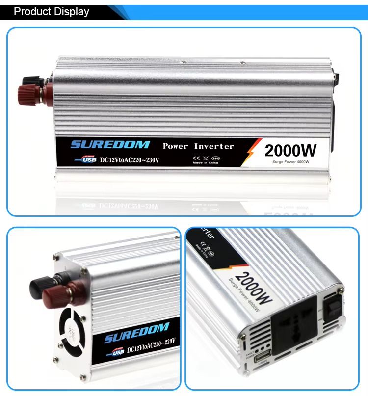 O inversor de energia mais popular de 500W, 1000W e 2000W para automóveis, inversor de onda senoidal modificada de DC para AC, 12V para 220V AC,Pagamento na entrega