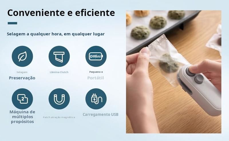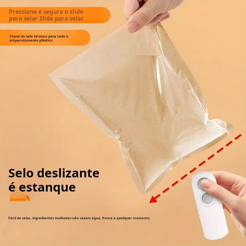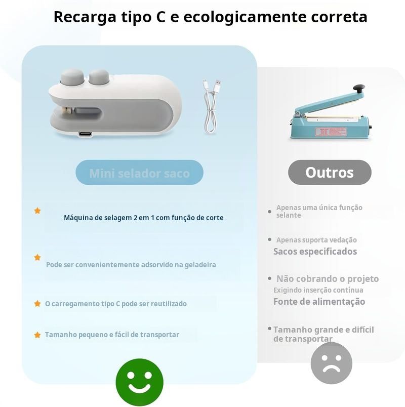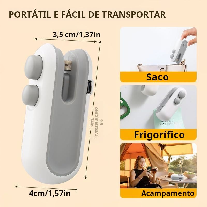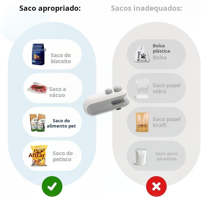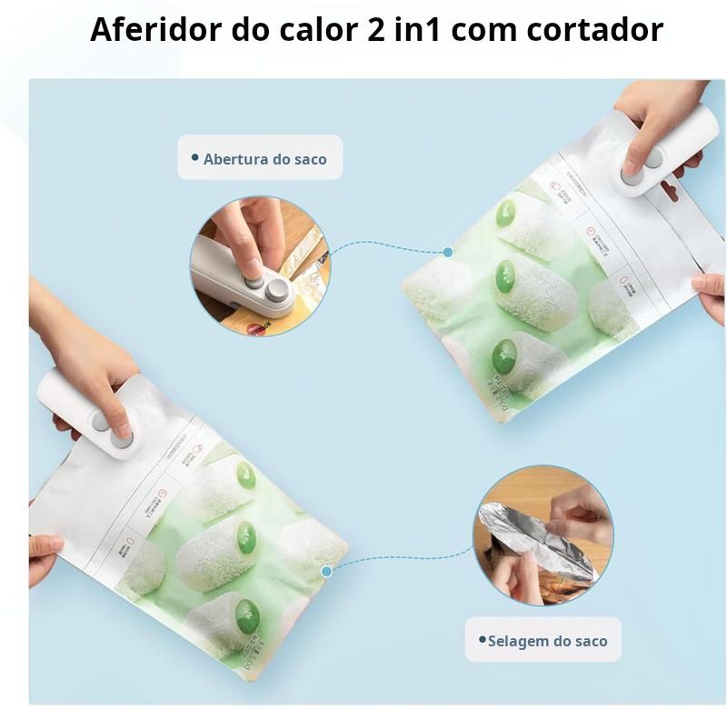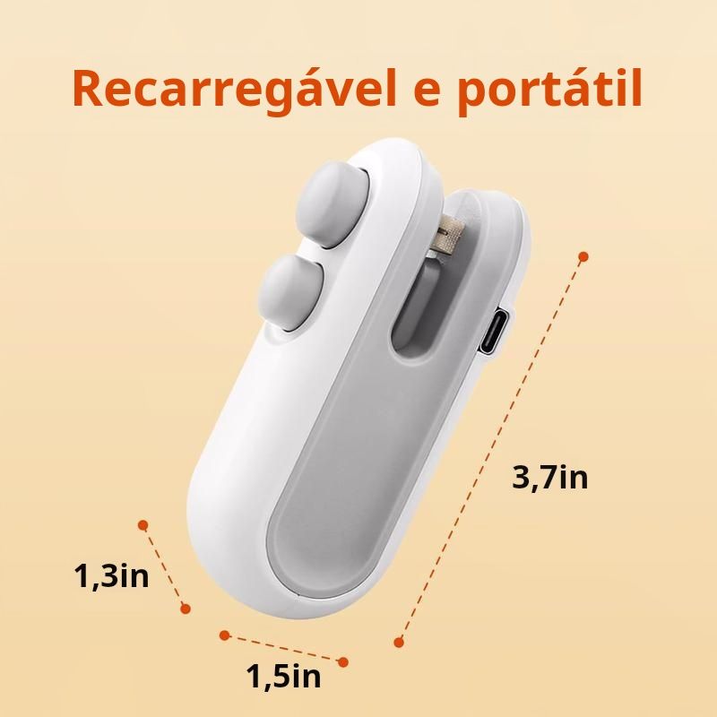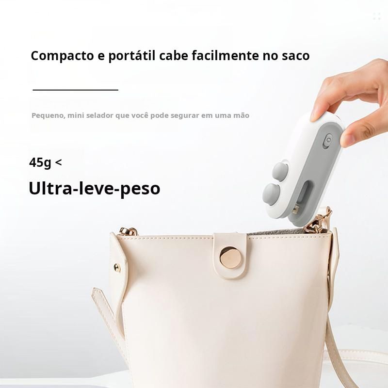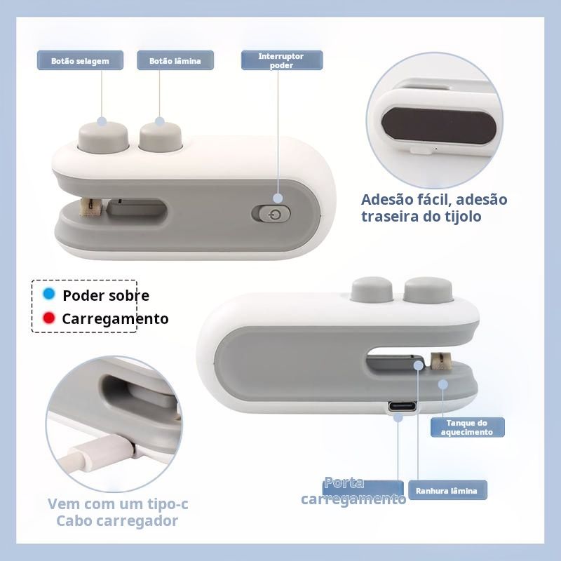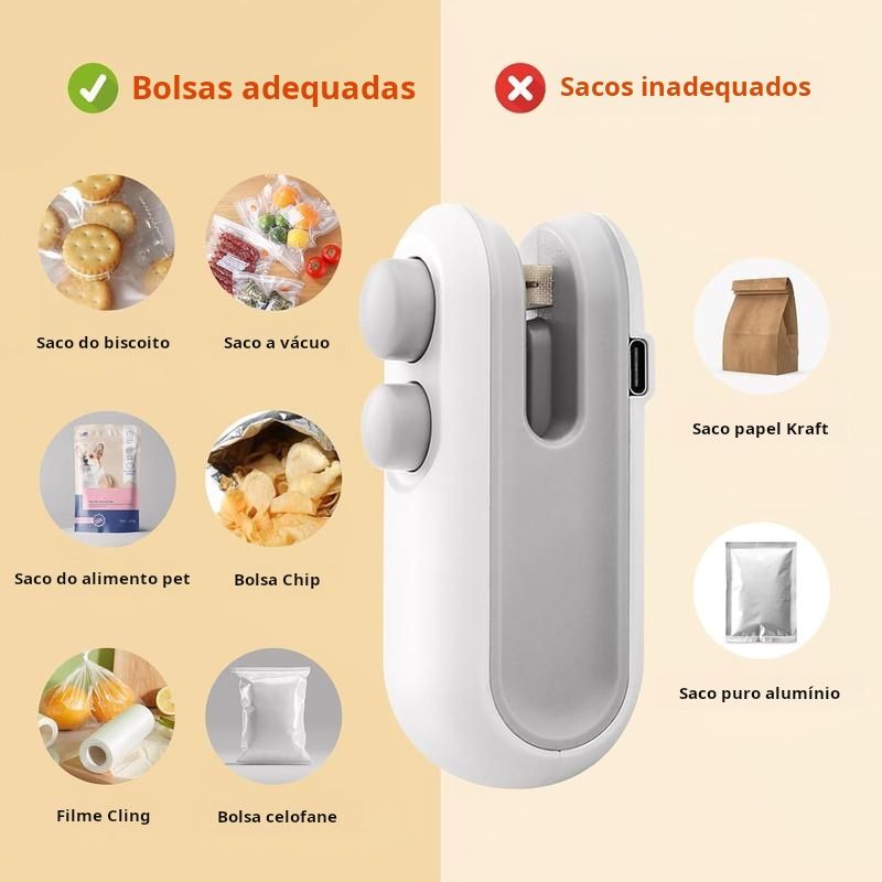 Seladora mini recarregável 2 em 1 para sacos de snacks, com cortador e vedação a quente, ideal para selar sacos plásticos e manter os alimentos frescos. Seladora de bolsas plásticas branca, fácil de usar e prática para o dia a dia